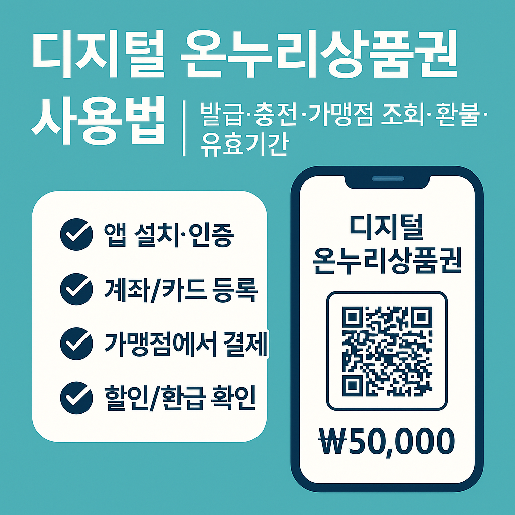 디지털 온누리상품권 사용법을 한 번에 정리했습니다. 앱으로 발급·충전하고, 가맹점 조회온라인 사용처, 유효기간·환불까지 핵심만 담았습니다.