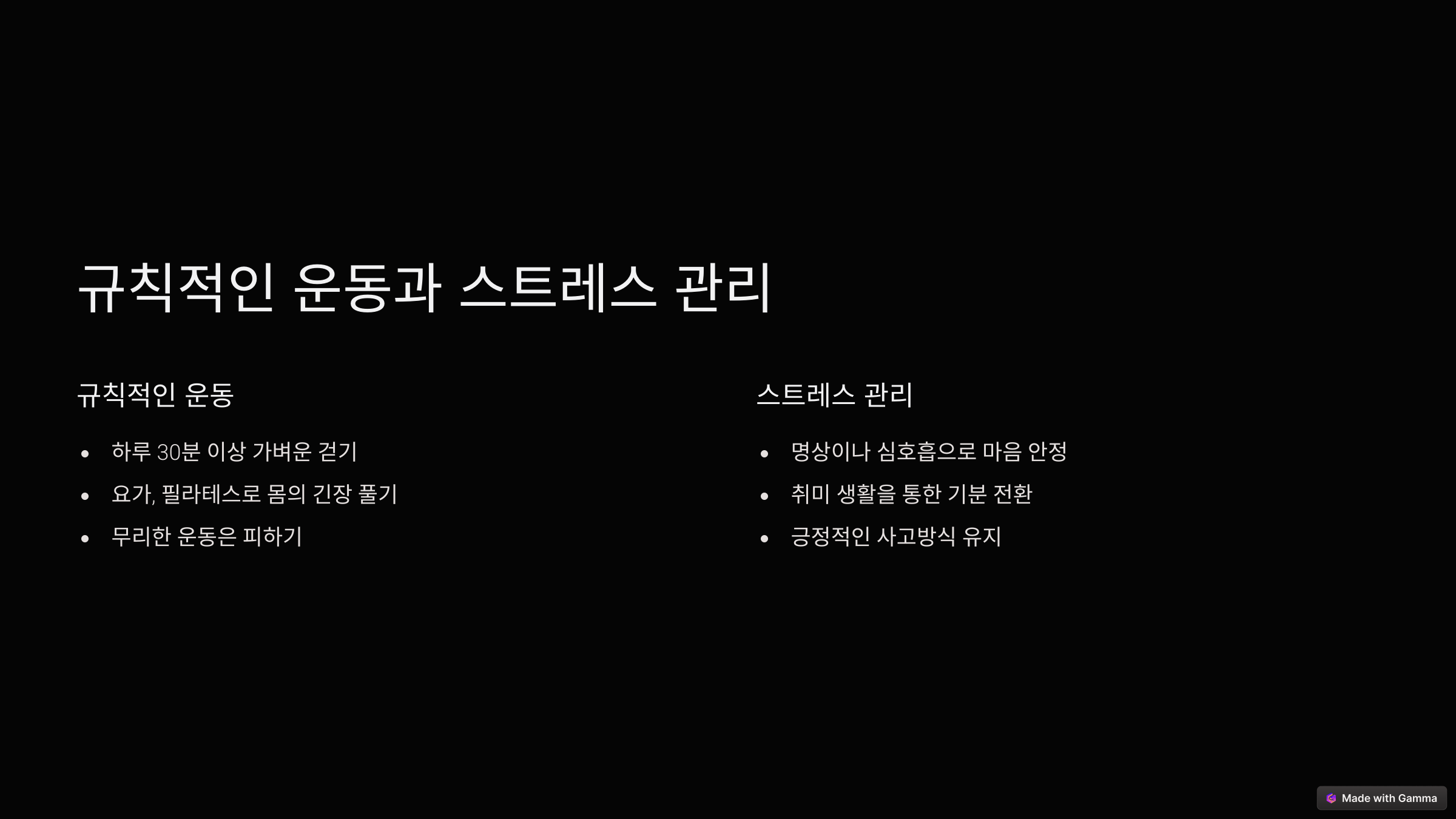 - 무리한 운동은 피하고, 꾸준한 습관 형성