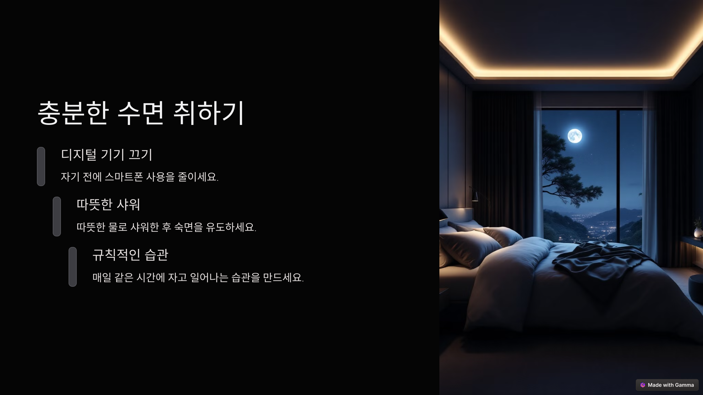 - 따뜻한 물로 샤워한 후 숙면 유도