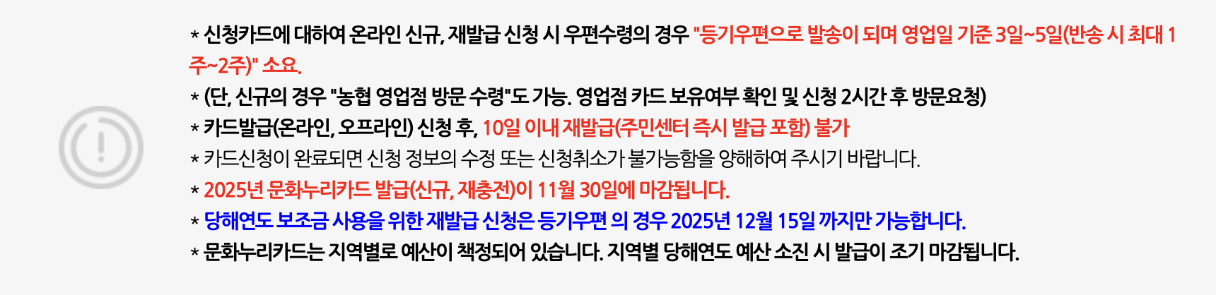 - 온라인/앱 : 누리집 회원가입 → 본인인증 → 신청 → 우편 수령 또는 농협 영업점 수령