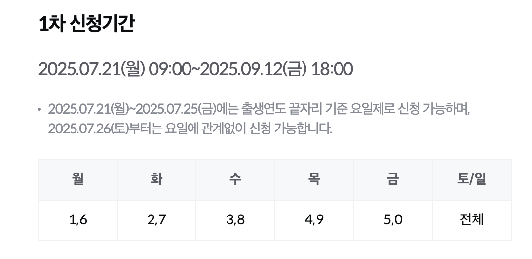 신청 시작일: 2025년 7월 21일 (월)부터 요일제 적용