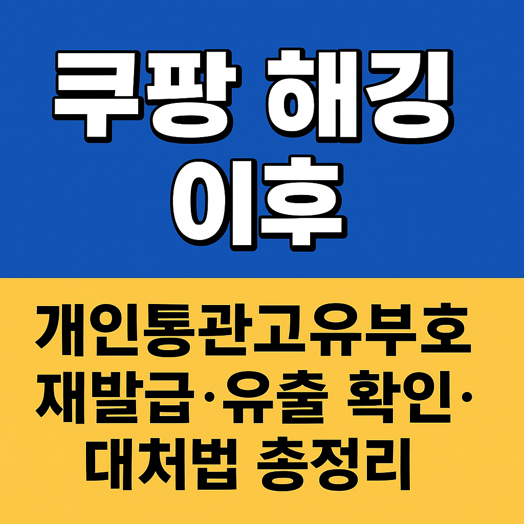 최근 쿠팡 해킹과 개인정보 유출 이슈 때문에 개인통관고유부호 재발급과 개인통관번호 유출 여부 확인을 찾는 분들이 정말 많아졌습니다. 해외직구를 한 번이라도 이용했다면 개인통관번호는 주민등록번호 수준으로 중요한 정보입니다. 이 글에서는 쿠팡 해킹 이후 꼭 알아야 할 ① 개인통관고유부호 재발급 방법 ② 유출 여부 확인 체크리스트 ③ 쿠팡 개인정보 유출 후 반드시 해야 할 조치를 한 번에 정리합니다.
