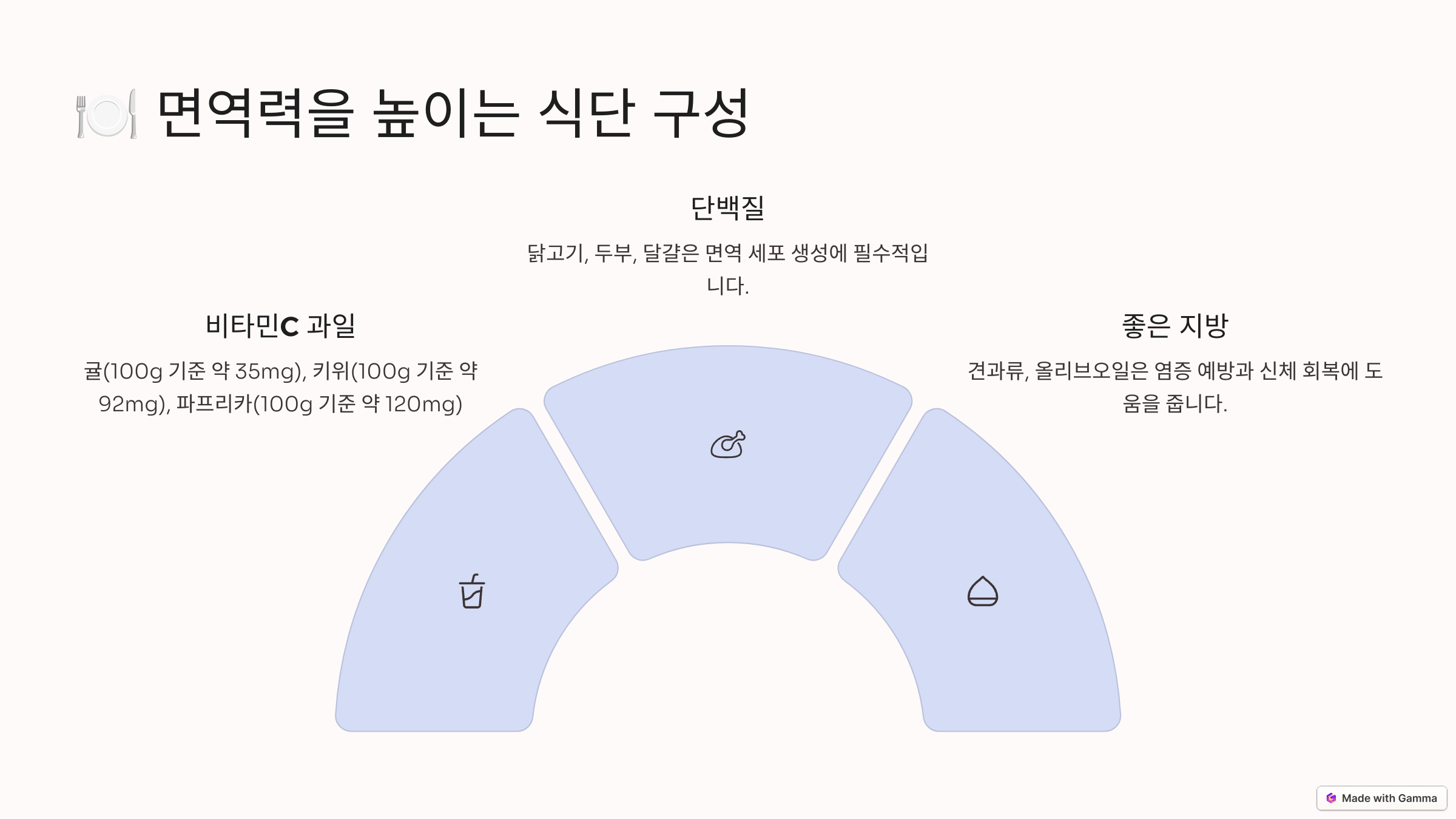 - 닭고기, 두부, 달걀: 면역 세포 생성에 필수