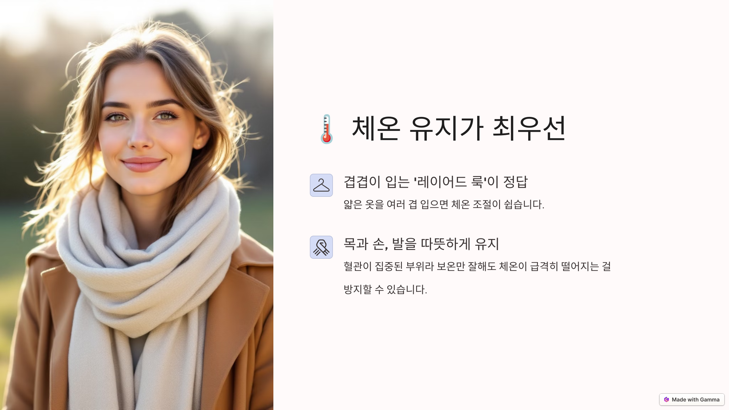 🌡️ 1. 일교차가 클수록 체온 유지가 최우선