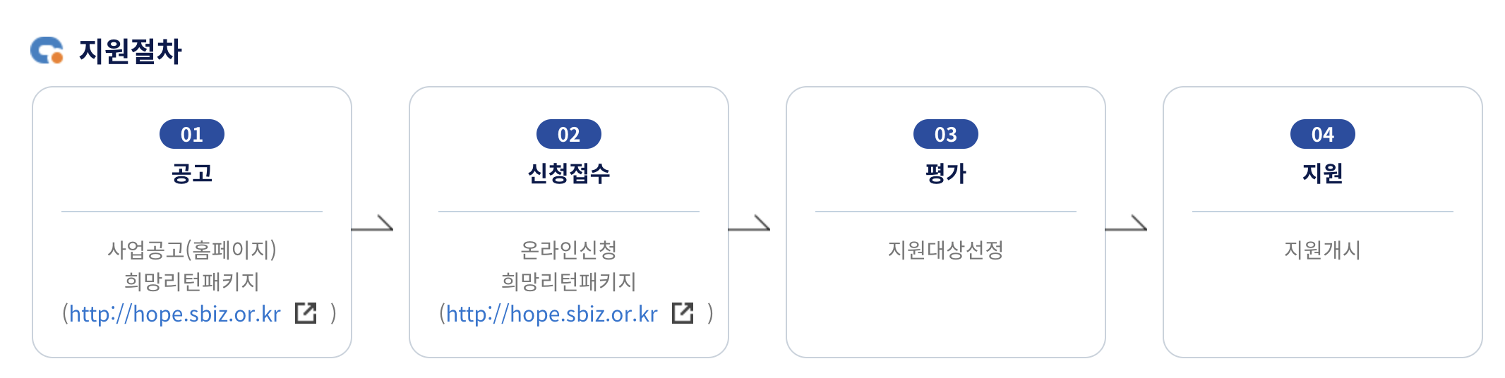 - 홈페이지 접속: https://hope.sbiz.or.kr
