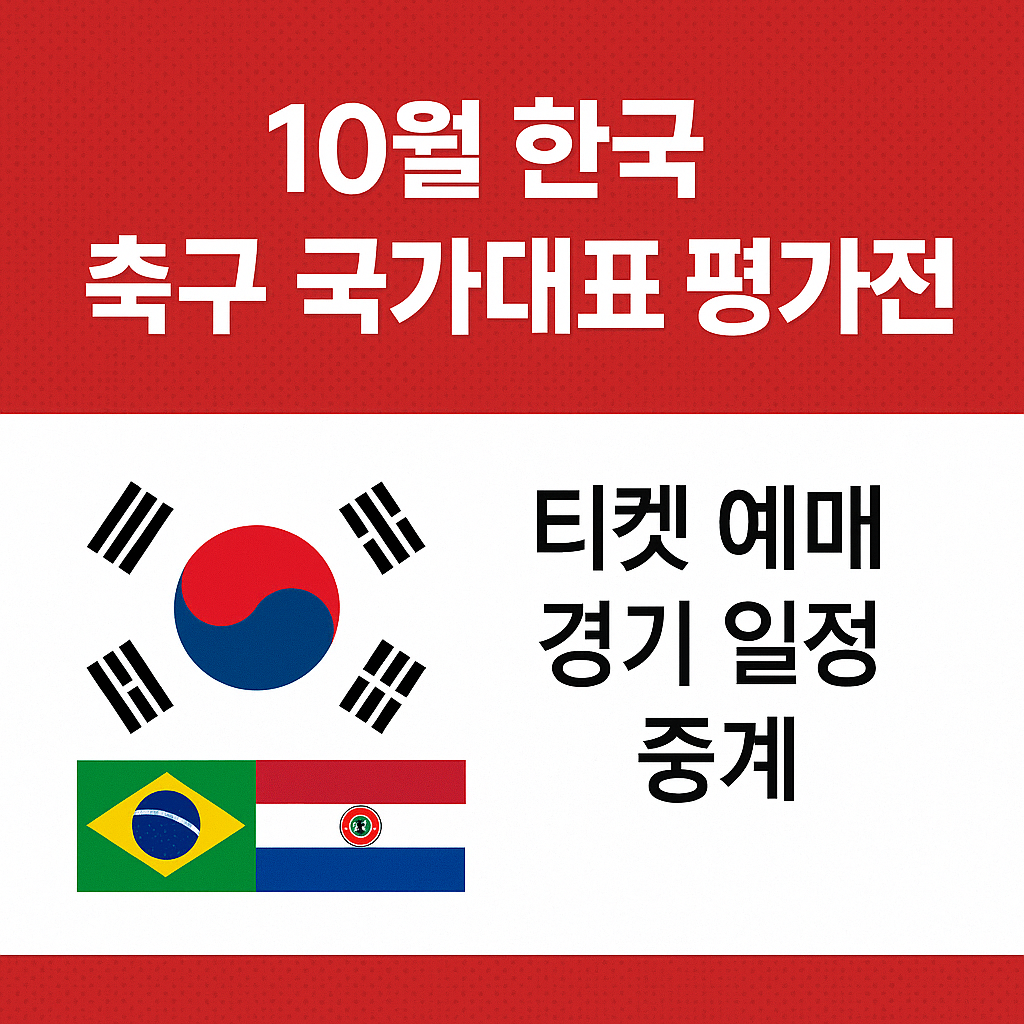 2025년 10월 한국 축구 국가대표 평가전 일정이 확정되었습니다. 브라질전과 파라과이전의 경기 일정·장소·티켓 예매·중계 정보를 한 번에 확인하세요.