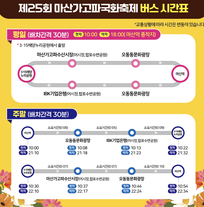 - 셔틀 정류장은 행사장 입구 및 마산역 광장 앞에 위치
