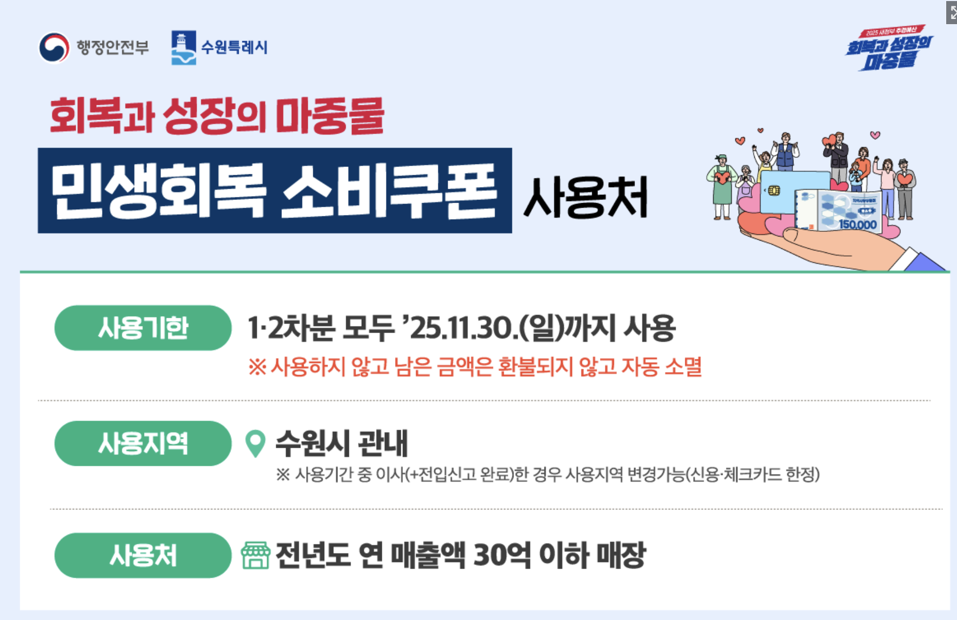 2025 수원 민생회복지원금 사용처 총정리 (사용 가능한 매장부터 제한 업종까지)