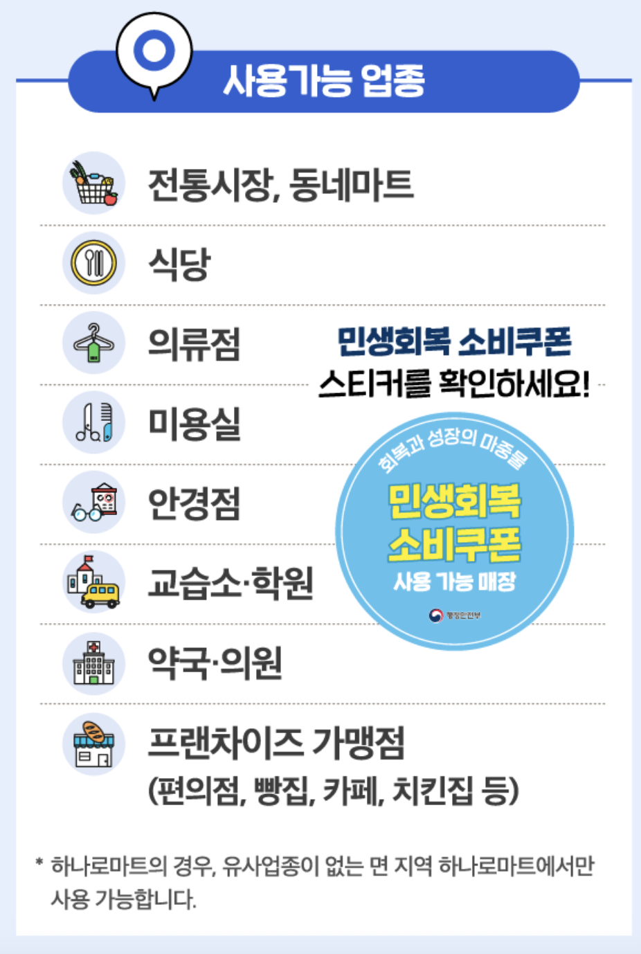 • 현장 확인: 매장 입구의 '지역화폐 사용 가능' 스티커 여부 확인
