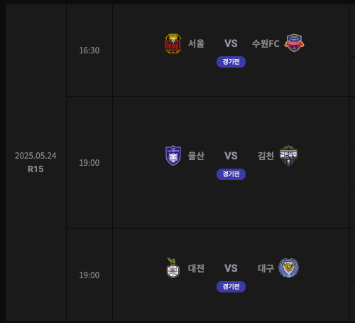 | K리그2 16라운드 경기일정⚽ 충남더비부터 수원vs인천까지 관전포인트 총정리 (0) | 2025.06.11 |